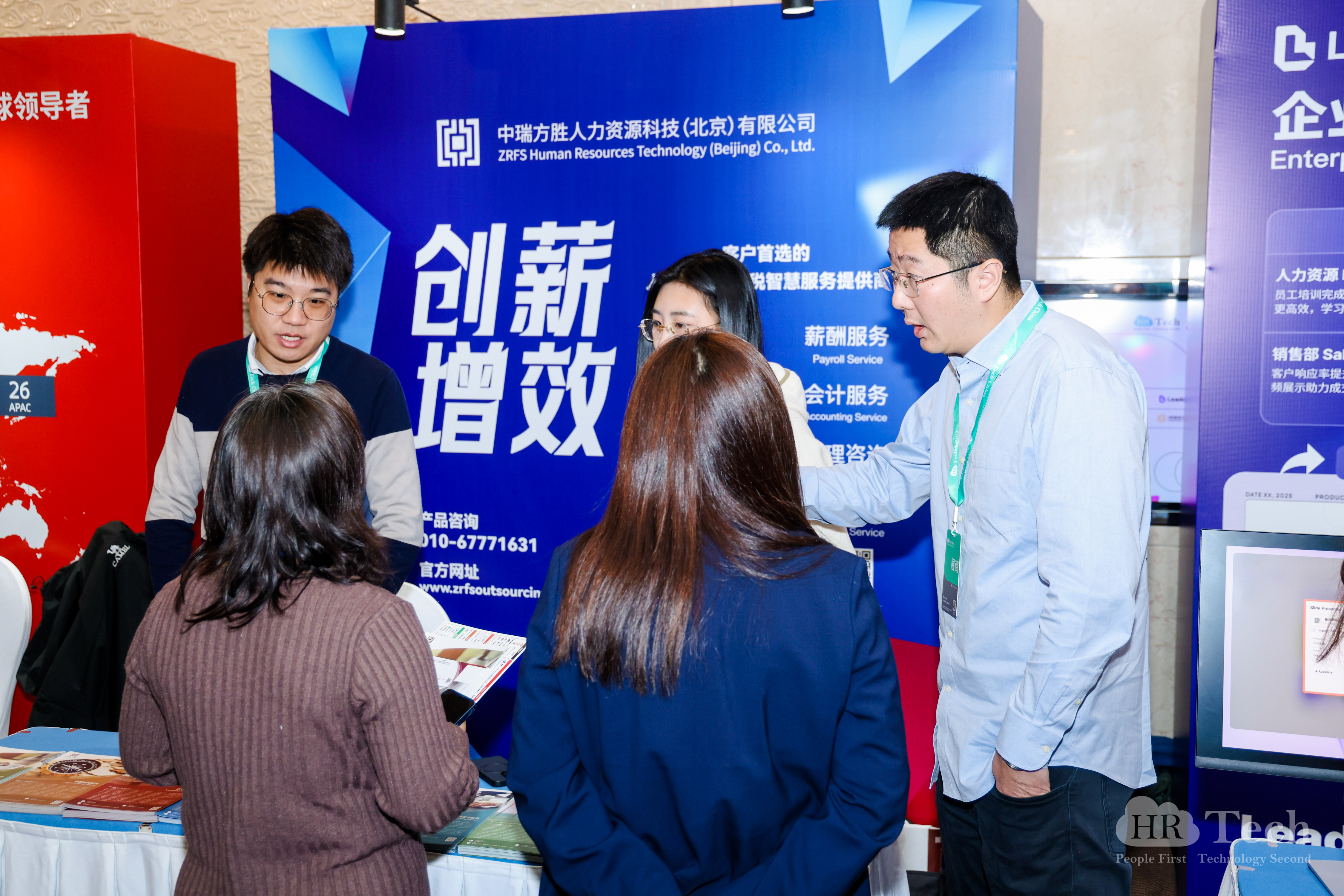 除了为与会者呈上一场极具针对性的专业主题分享之外,中瑞方胜精心打造的展台也吸引了参会者的目光。中瑞方胜的展台以其涵盖招聘、人力资源服务外包、薪酬福利、税务、会计、审计、管理咨询、企业出海服务、产业园运营、职业技能培训、系统服务、法律服务、商务服务等一系列准确切合企业需求特点的产品与服务,将企业战略目标与落实方案有效结合,助力企业灵活、合规、快速落地执行,受到与会者的欢迎,展台访问者络绎不绝。